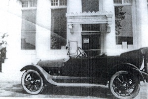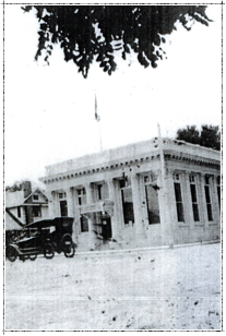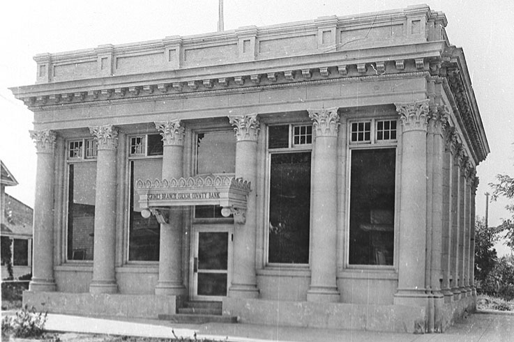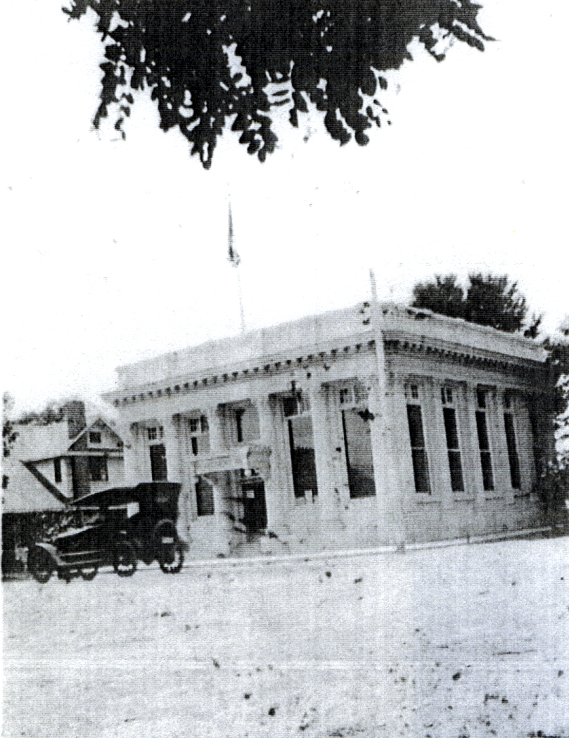 An old car parked in front of the Grimes Bank The Grimes Bank of Colusa County, CA