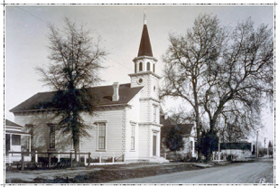 Downtown Grimes - early 20th c. (before cars) Grimes Community Church - year unknown