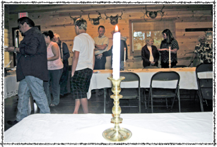 Pastor Marty Decker leads the Seder Supper while members listen and partake in its elements